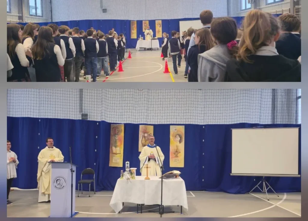 8 grudnia to wyjątkowy i bardzo ważny dzień dla całej społeczności szkolnej. Tego dnia obchodzimy uroczystość Niepokalanego Poczęcia Najświętszej Maryi Panny – jedno z najpiękniejszych świąt w roku liturgicznym – a jednocześnie wspominamy początek działalności ks. Jana Bosko w Oratorium. To dwie daty szczególnie bliskie wychowaniu i duchowości naszej szkoły. Jak co roku, wspólnota nauczycieli i uczniów wzięła udział w Mszy Świętej. Tegoroczna celebracja była wyjątkowa, ponieważ po raz pierwszy odbyła się w naszej hali sportowej. Uroczystość 8 grudnia przypomina nam o wartościach, na których zbudowana jest nasza szkoła – o trosce, wychowaniu, wzajemnym szacunku i duchowym rozwoju. To moment, w którym społeczność jednoczy się szczególnie mocno, wspólnie przeżywając ważne dla nas tradycje.